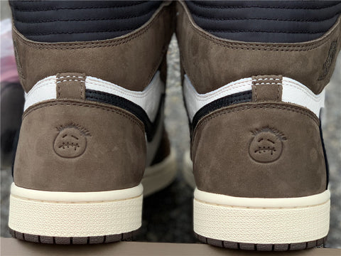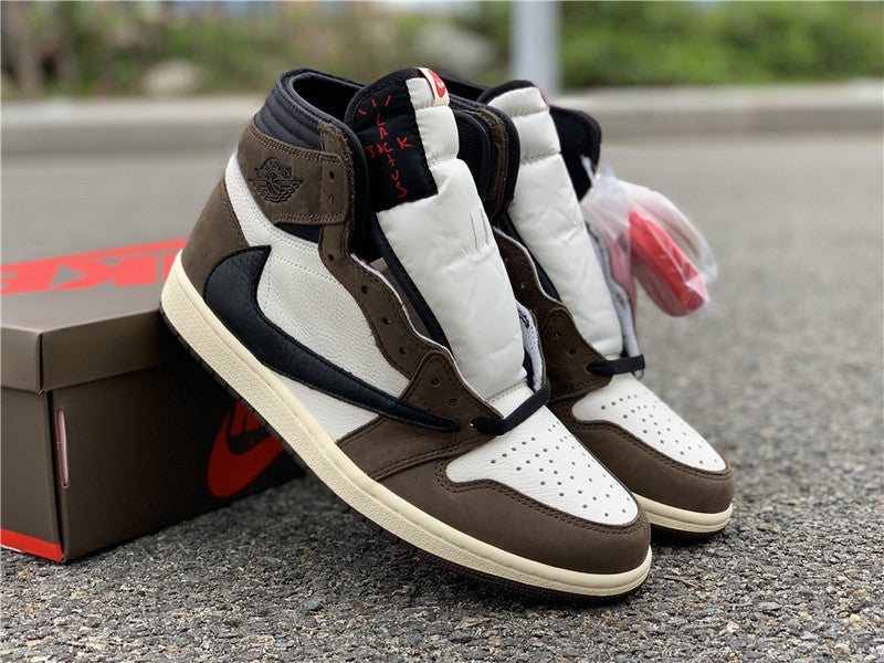 Carrying an Earthy Brown color scheme, this Travis Scott x Air Jordan 1 comes with a Red Nike label and Cactus Jack blade. But the most notable feature is a Nike Swoosh in the middle of the inverted foot that is embroidered on the side of it, along with a pocket keyed money hidden on the inner lining. Other details include the “Cactus Jack” logo behind the Swoosh in the middle, while there is a embossed face logo on the heel of the shoe.