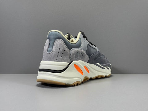 This 700 features a grey upper with suede overlays and orange accents on the midsole. Dark shades make their way to the toe box, and as you move further back, you’ll be hit with clean cream hues that provide a simple yet striking contrast. Down below, the beloved Boost midsole is present, housed in a chunky foam unit, and unlike the OG YZY colourway, a brown gum rubber outsole finishes it all off.
