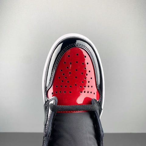 This Air Jordan 1 comes dressed in a Black, White, and Varsity Red color combination. The pair comes highlighted in the traditional Black and Red color combination while patent leather runs across the upper. Furthermore, the pair comes with a Gold Jumpman hangtag that furthers the premium theme. Next, we have the standard Nike Air branding on the tongue and the Wings logo on the ankle. Also, on the liner, we have ‘Family’ written in Red. Lastly, a White midsole and a Red rubber outsole finish the look.
