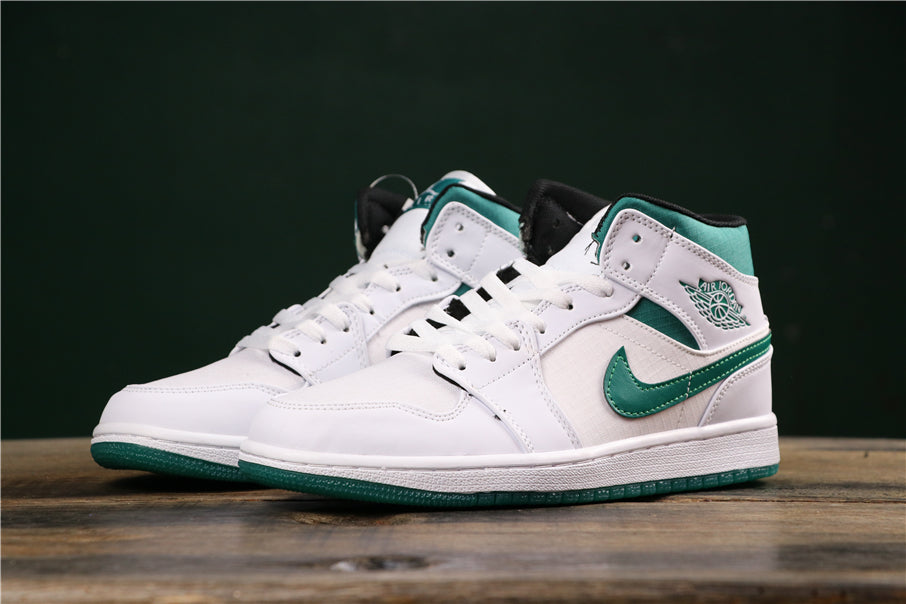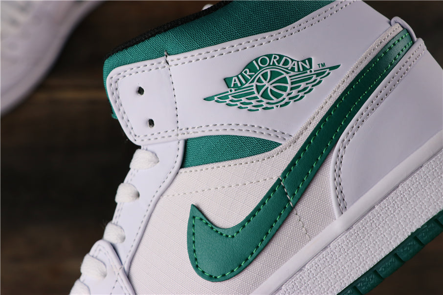 This Air Jordan 1 Mid takes on a classic features a stark white base, using a ripstop material for the underlays and a smooth leather for the overlays. Bold green accents then appear on the midfoot Swoosh, collar, ball-and-wings logo, and tongue tag, providing a striking contrast with their simple background. A white midsole and translucent green outsole then complete the look.