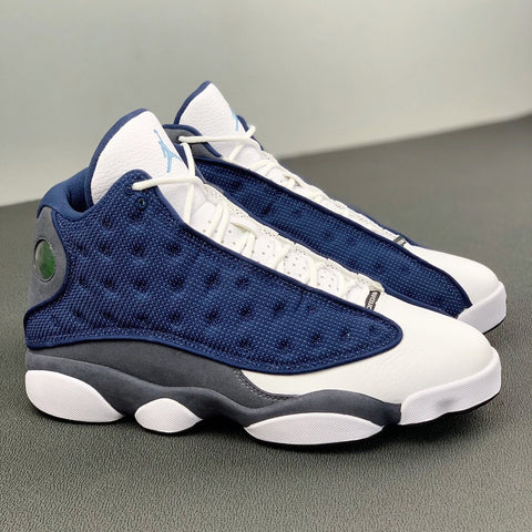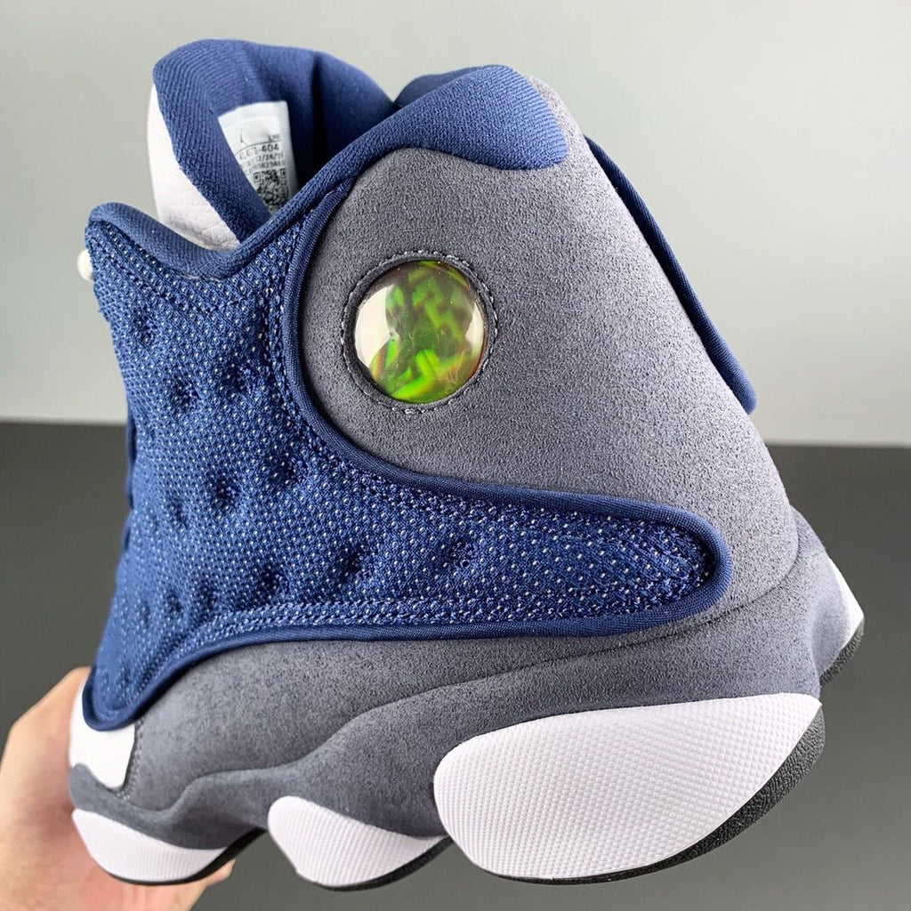 This new Air Jordan 13 joined Jordan Brand’s Spring lineup with the fan-favorite “Flint” colorway.The 2020 Air Jordan 13 Flint comes with a white pebbled leather on the toe and 3M reflective Navy mesh paneling on the side panels. Flint Grey suede on the mudguards and heel provide more contrast on this classic Air Jordan 13 colorway. University Blue Jumpman logos on the tongue, the signature cat eye hologram on the heels, white laces, and white & grey rubber outsole wrap up the look on this Air Jordan 13.
