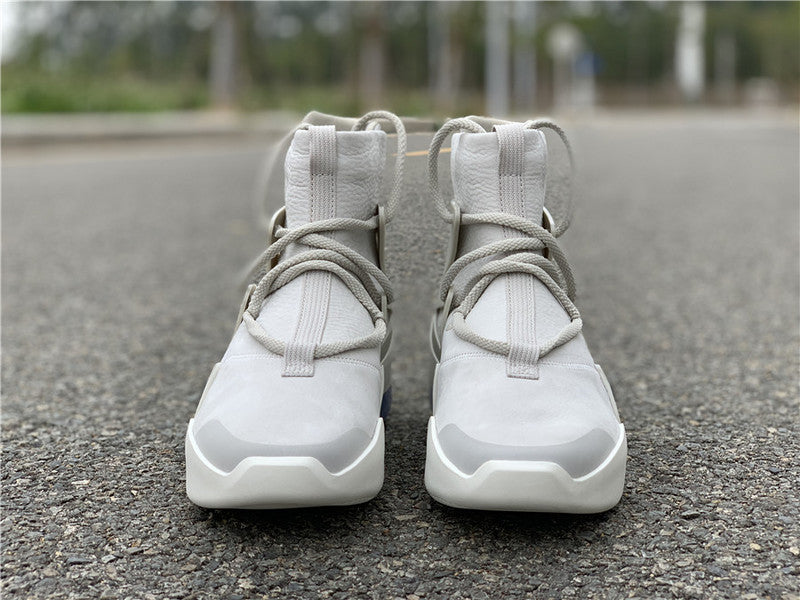 One of the debut colorways comes dressed in a Light Bone color scheme. The high-top performance shoe features a premium leather upper, TPU cage wrapping the heel, a zipper up the heel, long rope laces that wrap the ankle, and a stacked Zoom Air unit in the midsole. Branding is kept to a minimum with a small black Swoosh on the lateral side and tonal Nike Air and Fear of God logos on the heel.