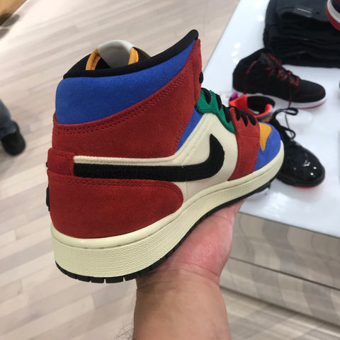 Released in November 2019, the Nike Blue The Great x Air Jordan 1 Mid 'Fearless' is a combination of a variety of materials as well as a multicolored color scheme. Arguably this is one of the most complicated versions of the Air Jordan.
