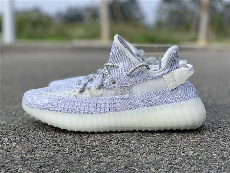 It features an upper composed of White and Grey re-engineered Primeknit with a transparent monofilament side stripe woven into the upper. The midsole utilizes adidas’ innovative Boost technology.